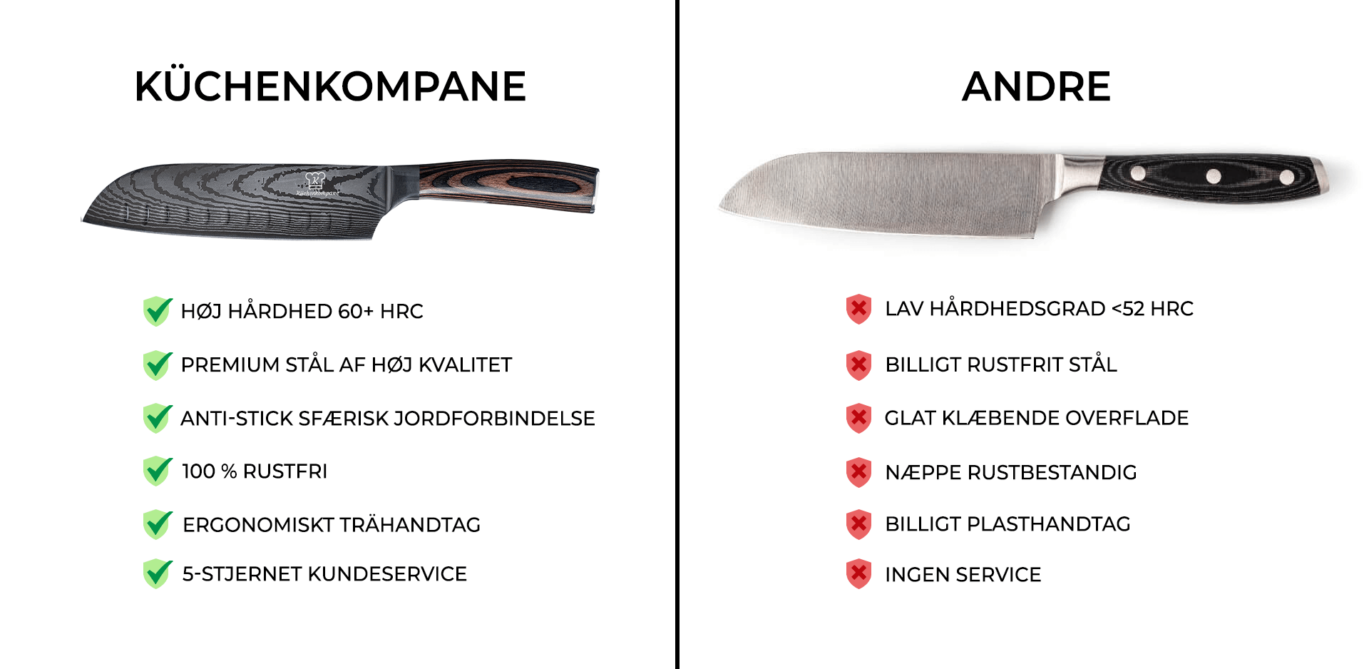 „Küchenkompane leverer premiumknive i topklasse – håndlavet præcision og en skarphed, du aldrig glemmer. Et must i ethvert køkken!“